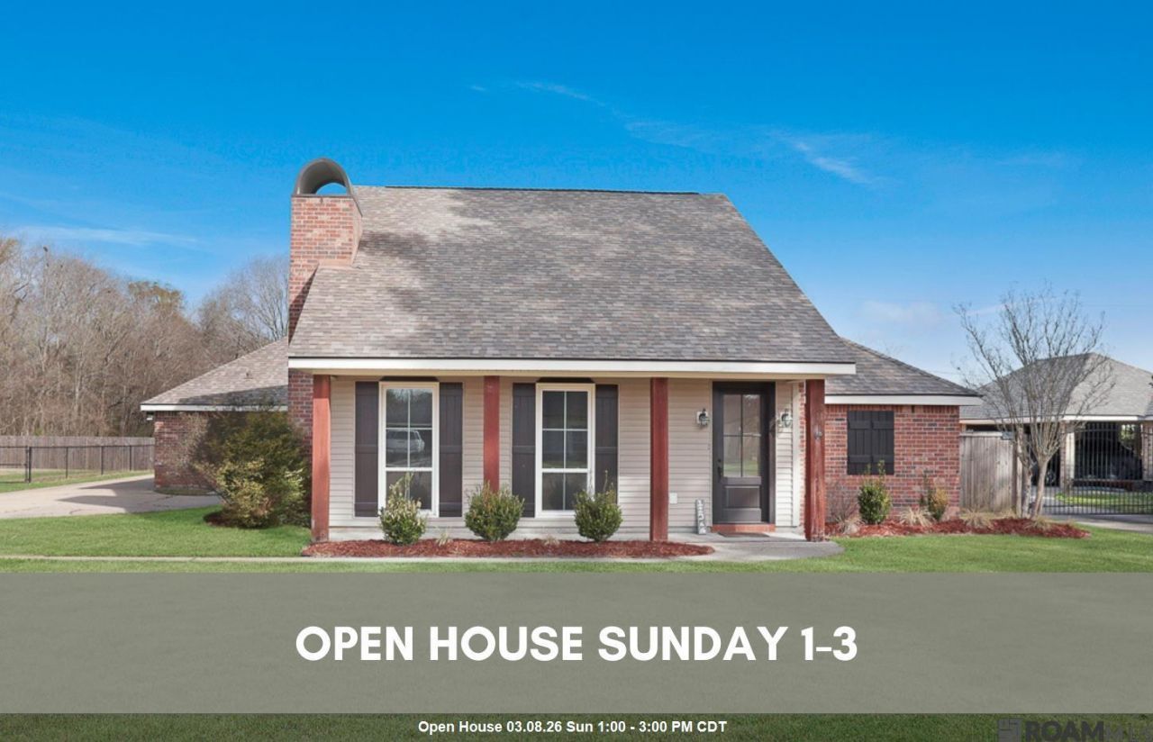 Precious Acadian-style home with classic wood columns & a welcoming front porch! Inside, you'll love the vaulted living room ceiling with exposed beams & a stunning slate tile fireplace. Wood-look tile floors throughout the main areas offer both beauty and durability. The kitchen features thick granite countertops, a gas range, stainless steel KitchenAid appliances, herringbone backsplash, touch-free faucet, breakfast room, and a formal dining area just off the living room. The spacious primary suite offers an elevated ceiling, huge walk-in closet, double vanity, large soaker tub, and tiled shower. The guest bath is also beautifully upgraded with a large tiled shower with bench, granite countertops, built-ins, and extra storage. Step outside to an extended covered patio overlooking the well-maintained pool with a newer liner. Filter sand was replaced in 2025, and the Polaris pump motor was replaced in 2025. There is also a separate fenced area ideal for camper or boat storage, plus a storage area with roll-up door and ample driveway space for parking or additional storage! This home backs up to a servitude greenspace for added privacy and buffer. Additional features include an air purification system and humidity control integrated with the upgraded HVAC system. Located in Morgan Place West, a quiet, friendly neighborhood with one entrance and low traffic. A truly well-maintained home with thoughtful updates throughout!