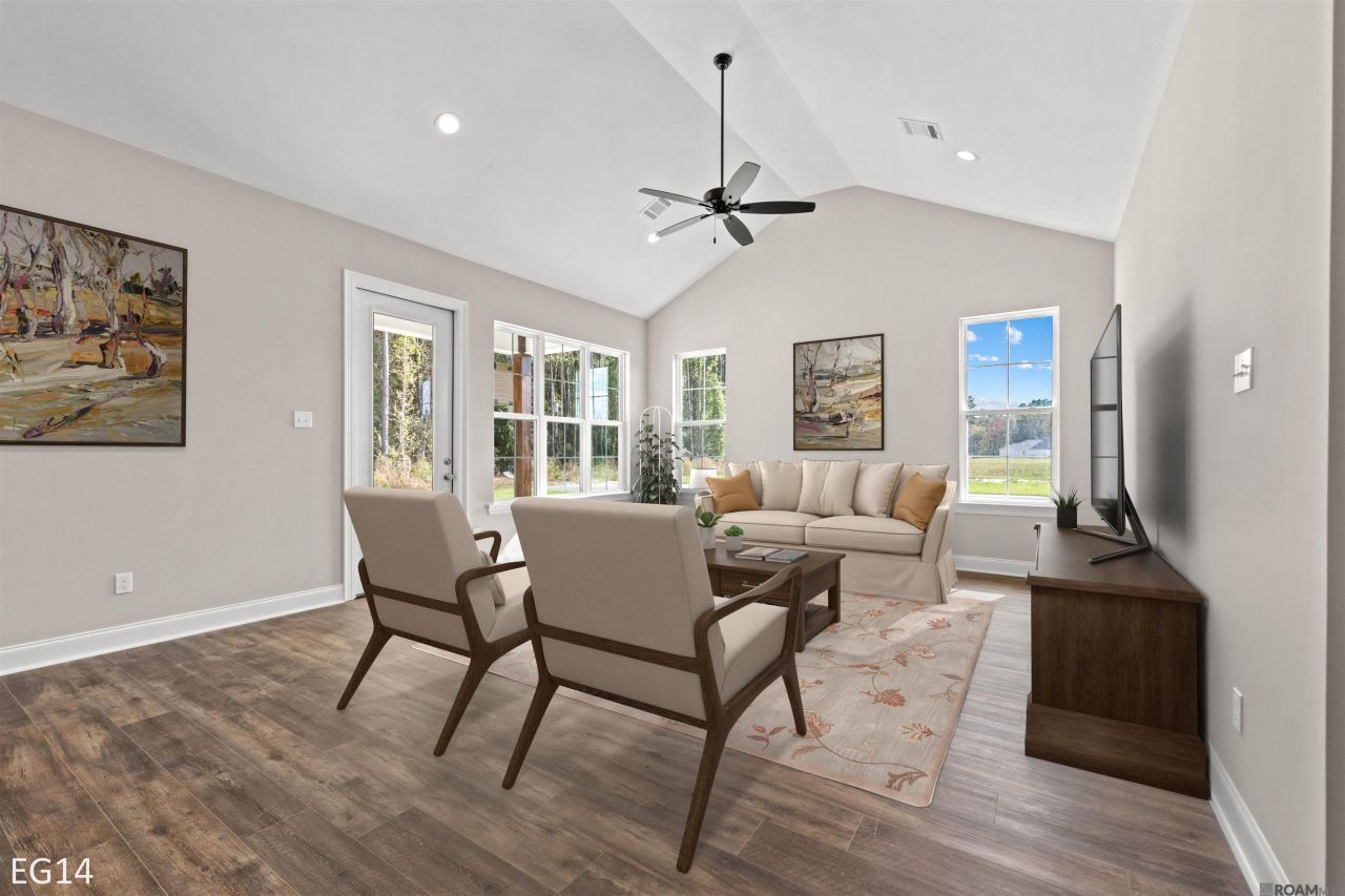 NEW CONSTRUCTION on CORNER LOT in Eagles Gate! *Receive up to $10,000 in incentives and a FREE refrigerator and blinds on this MOVE-IN READY stunning Riley Heritage floor plan by Manuel Builders. Offering 4 bedrooms, 2 baths, and 1,816 sq. ft., this open, split layout blends style, comfort, and functionality. Inside, the living room's cathedral ceiling and wall of windows fill the space with natural light, while the patio?just off the living area?creates the perfect spot for entertaining. The gourmet kitchen showcases custom-built cabinetry with soft-close doors, premium hardware, a freestanding gas range, stainless steel appliances, 3cm granite countertops, stylish backsplash, pendant lighting, an undermount sink, and garbage disposal. The private master suite offers a spa-like feel with dual vanities, framed mirrors, 3cm granite countertops, custom cabinetry, and a spacious walk-in closet featuring built-in shelving and cubbies. Exterior highlights include a fir wood front door, architectural shingles, tankless water heater, front landscaping, and a covered back patio with an electrical outlet for tv-mounting. This ENERGY STAR Certified home means lower utility bills and more comfort. Eagles Gate residents enjoy top-rated schools on the same street, plus quick access to Juban Road Shopping Center, dining, and entertainment. Experience the tranquility of Eagles Gate?schedule your showing today!