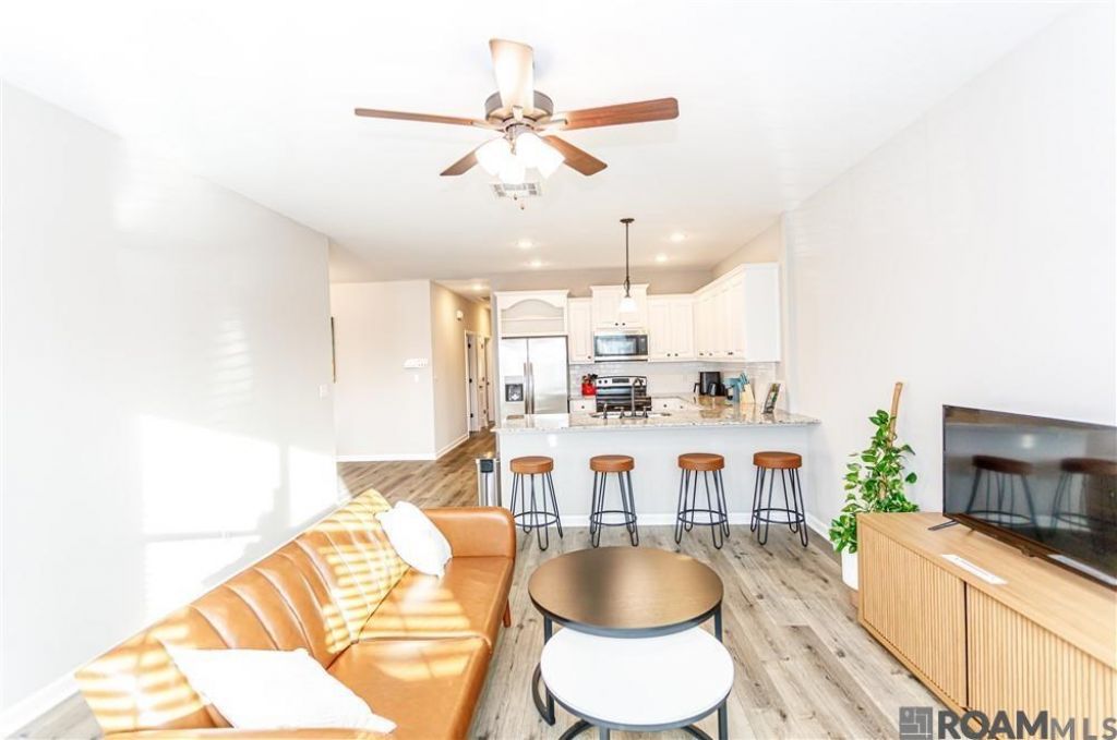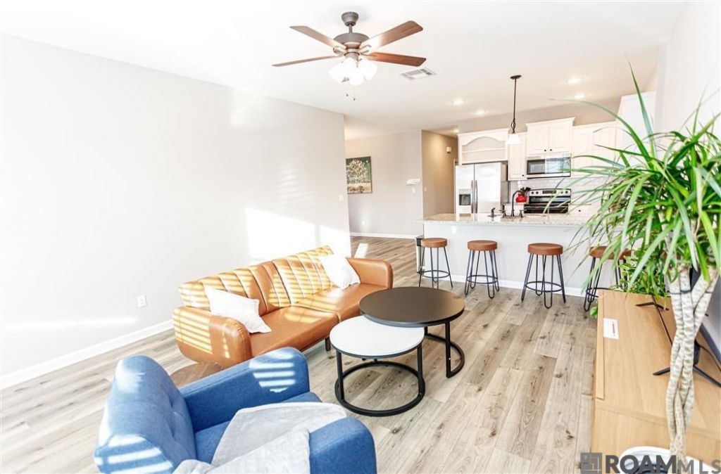 This FULLY FURNISHED 3 bedroom, 2 bath floor plan maximizes all of its space and offers tons of amenities complete with beautiful finishes throughout. The kitchen features slab granite countertops, custom-painted cabinets, a full pantry, stainless steel appliances, and a snack bar. The kitchen overlooks the dining area and living room. The master bedroom offers a lot of space and flows into the en-suite bathroom featuring custom cabinets, garden tub, separate shower, and a large walk-in closet. Another huge bonus is the luxury vinyl tile flooring throughout. Absolutely no carpet. Refrigerator, washer, dryer included. The lawn is maintained by the HOA. Chapel Hill is is located across the street from St. Jean Vianney Catholic Church and is only minutes from I-12, shopping, and restaurants. Can be rented with utilities (electric, water, trash, sewer, and internet) included for $2450/month.