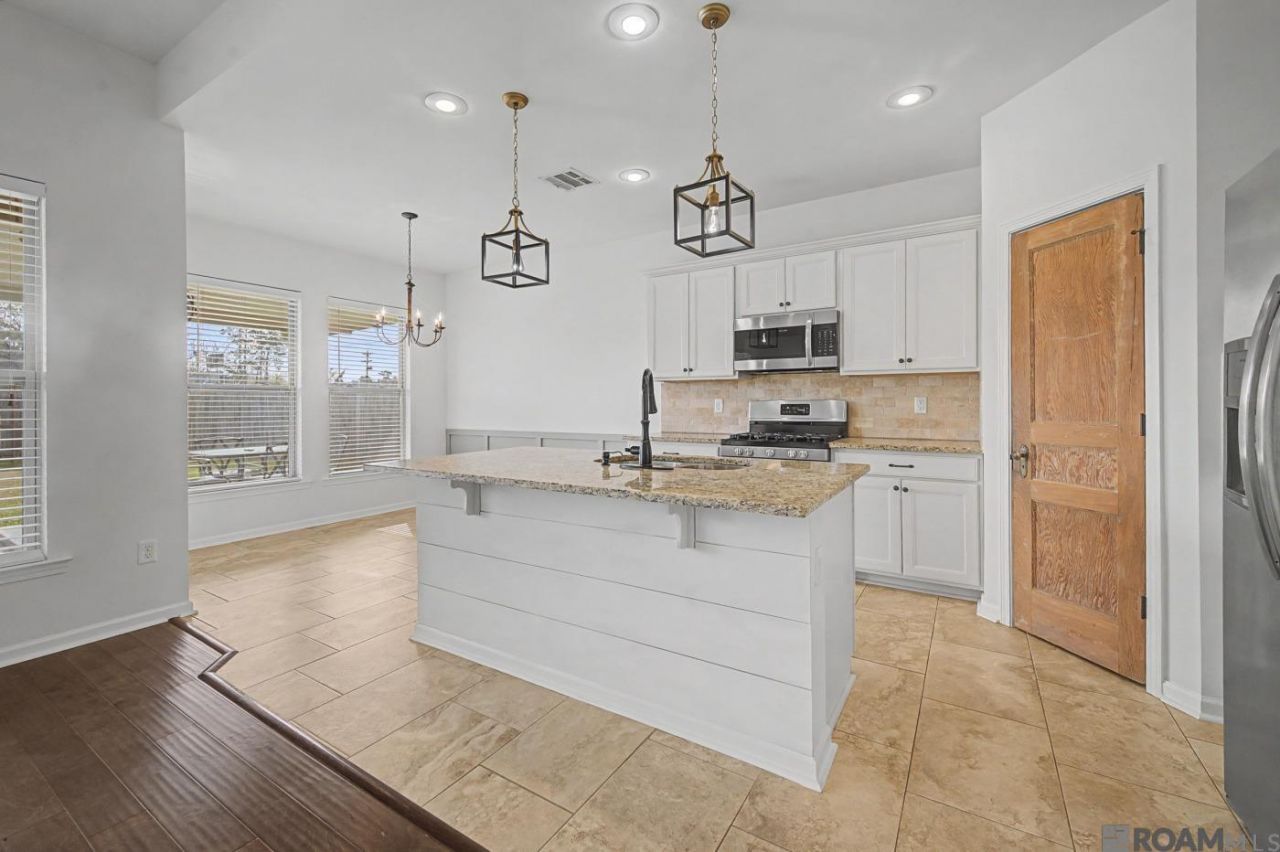 Beautifully maintained home featuring wood flooring in the living area and 12x24 staggered tile in wet areas. The kitchen offers a gas stove, refrigerator to remain with the home, a charming shiplap-accented front island, and a unique vintage wood door leading to the pantry that adds character and warmth to the space. Bedrooms are spacious with framed mirrors in bathrooms and 2 wood blinds throughout the home. Step outside to enjoy the extended covered patio complete with outdoor TV, fire pit, and patio furniture ? perfect for entertaining or relaxing evenings at home. Move-in ready with thoughtful upgrades throughout.