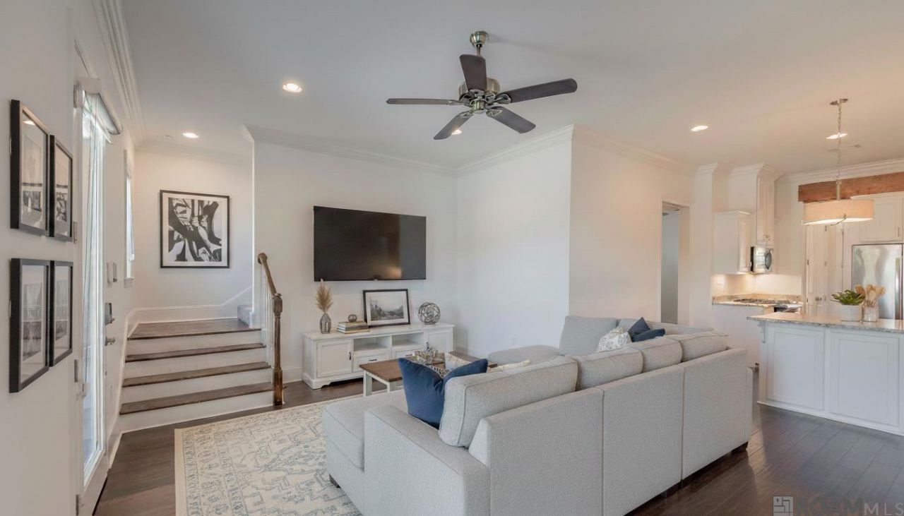 Gated Myrtle Grove Townhomes is luxury living located minutes from downtown Baton Rouge, MS River Bridge & LSU campus/Tiger Stadium. Pull in & see the private front vestibule with copper gas lantern, professional landscaping, & designated parking for the unit. Enter the living room of this 3 bedroom 3 bath unit to appreciate the 10ft ceilings, antique pine beam, modern trim molding, all in this open floorplan with 7in wood flooring running throughout main living area. Appreciate views of TIGER STADIUM & the MS River Bridge. The floorplan flows nicely past the dining area into the kitchen with painted cabinets with 3cm slab granite, & under mount sink. Plenty of custom-built white cabinetry line the kitchen for ample storage, a pantry, bar area with brushed nickel hardware, recessed lighting, technology docking area & stainless appliances: 5 burner gas convection oven, hidden hood vent, & built-in dishwasher. If you need more room then take the party outside to the covered porch with extended deck area of your fenced backyard for grilling or the afternoon sunset. Upstairs you will find a master suite with 9 ft ceilings, a private ensuite bath includes dual vanities, under mount sinks, & designer framed mirror, tile shower, soaker tub, rear balcony with wrought iron railings & privacy louvers, & walk-in closet with built-in shelving. Across the hall is the laundry & a 2nd bedroom with walk-in closet & private bath featuring designer framed mirror, slab granite counters, under mount sink & brushed nickel hardware.