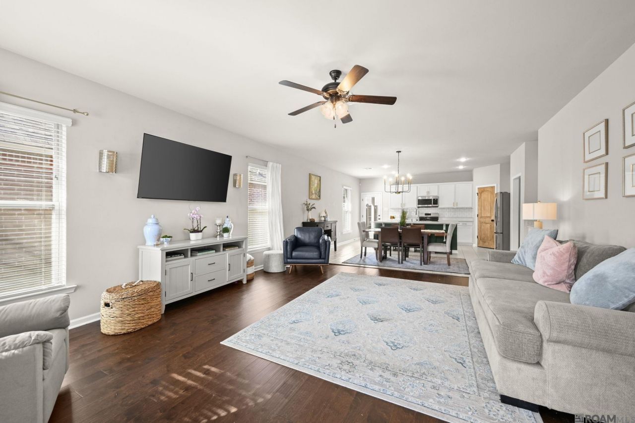 Welcome to this beautifully maintained 4-bedroom, 2.5-bath home in the desirable Rose Gardens community, now located in the City of St. George. Offering a spacious open-concept design, this home blends comfort, functionality, and energy efficiency. The light-filled living area flows seamlessly into the dining space and kitchen, creating an ideal setup for everyday living and entertaining. The kitchen features quartz countertops, a gas range, stainless steel appliances, custom backsplash, and a large center island with bar seating. Durable wood flooring enhances both the living area and primary bedroom. The primary suite offers a relaxing retreat with a garden soaking tub, separate shower, and a walk-in closet that connects conveniently to the laundry room. Three additional bedrooms provide flexibility for guests, office space, or hobbies. A drop zone near the garage entry and a half bath add everyday practicality. Outdoor living is a standout feature with an extended patio and additional concrete, now complemented by a covered patio?perfect for entertaining or enjoying quiet evenings outdoors. Gutters, a tankless water heater, and energy-efficient construction provide added peace of mind. Located in Flood Zone X and near parks, schools, shopping, and dining, this home offers convenience and thoughtful upgrades throughout. Schedule your private showing today.