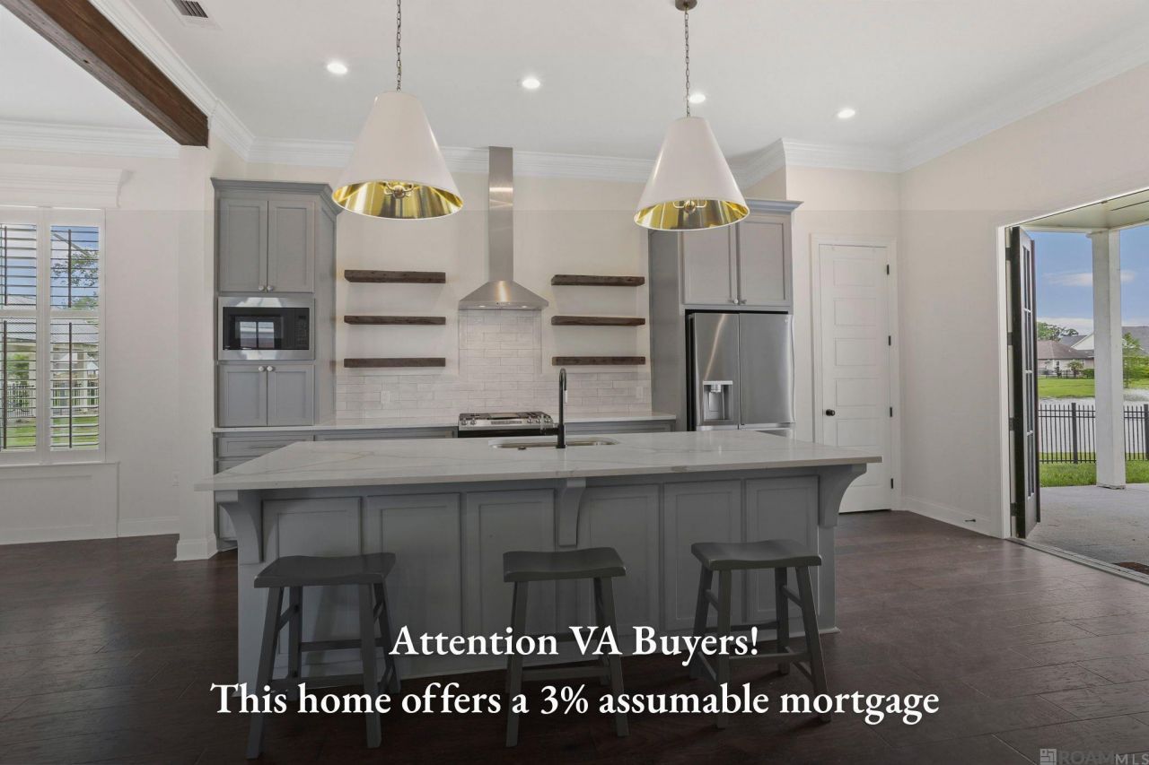 3% ASSUMABLE MORTGAGE FOR V A BUYERS! Home is Back on the Market through no fault of the seller. Fall love with this stunning 3-bedroom, 2.5-bath home, perfectly located next to the neighborhood park and scenic lake. Full of character and thoughtful upgrades, this home features beautiful cypress accents both inside and out, giving it a warm and inviting feel. Custom Plantation shutters offer privacy in the living room. Enjoy wood floors throughout the main living areas, BRAND NEW Carpet in the bedrooms, a spacious 2-car garage, and a fully fenced backyard that has incredible views of the water? perfect for relaxing evenings or weekend gatherings. The open floor plan features a chef's dream with granite countertops in the kitchen, island, pantry, gas cooktop and refrigerator. The primary suite is a luxurious retreat, offering a large oversized shower, a soaking tub, and a huge walk-in closet. Elegant design touches are found throughout, along with smart home capabilities including an integrated security system, outdoor camera system, automated door locks, and a smart garage door. Located in the heart of Central, this home combines modern conveniences with classic charm, and is convenient to shopping and area restaurants. Outdoor grill and television over the fireplace will remain.