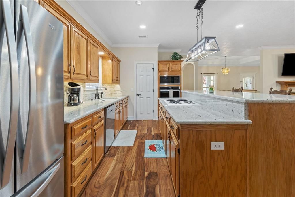 Everything you need in a home! This 3 bed, 2 1/2 bath beauty was remodeled in 2023, including wiring upgrades and appliance upgrades. In pristine condition, the inside features a 2 sided gas fireplace, kitchen island/breakfast bar and quartzite countertops, beautiful glass-tiled backsplash and undermount sink. Outside features covered patio, ample storage for your belongings and full attic access with metal stairs. There are too many amenities to name so come and view for yourself and make it your forever home.
